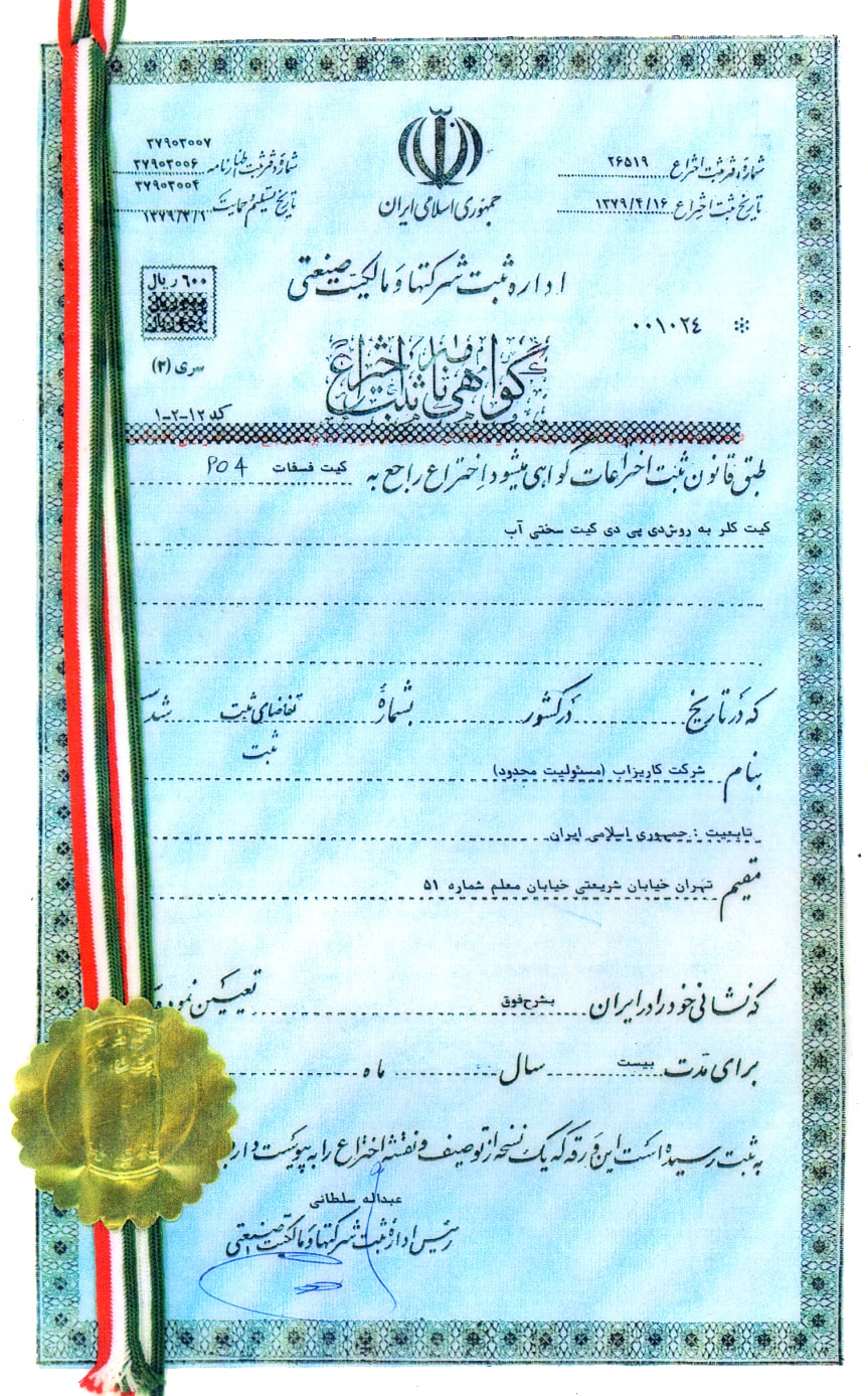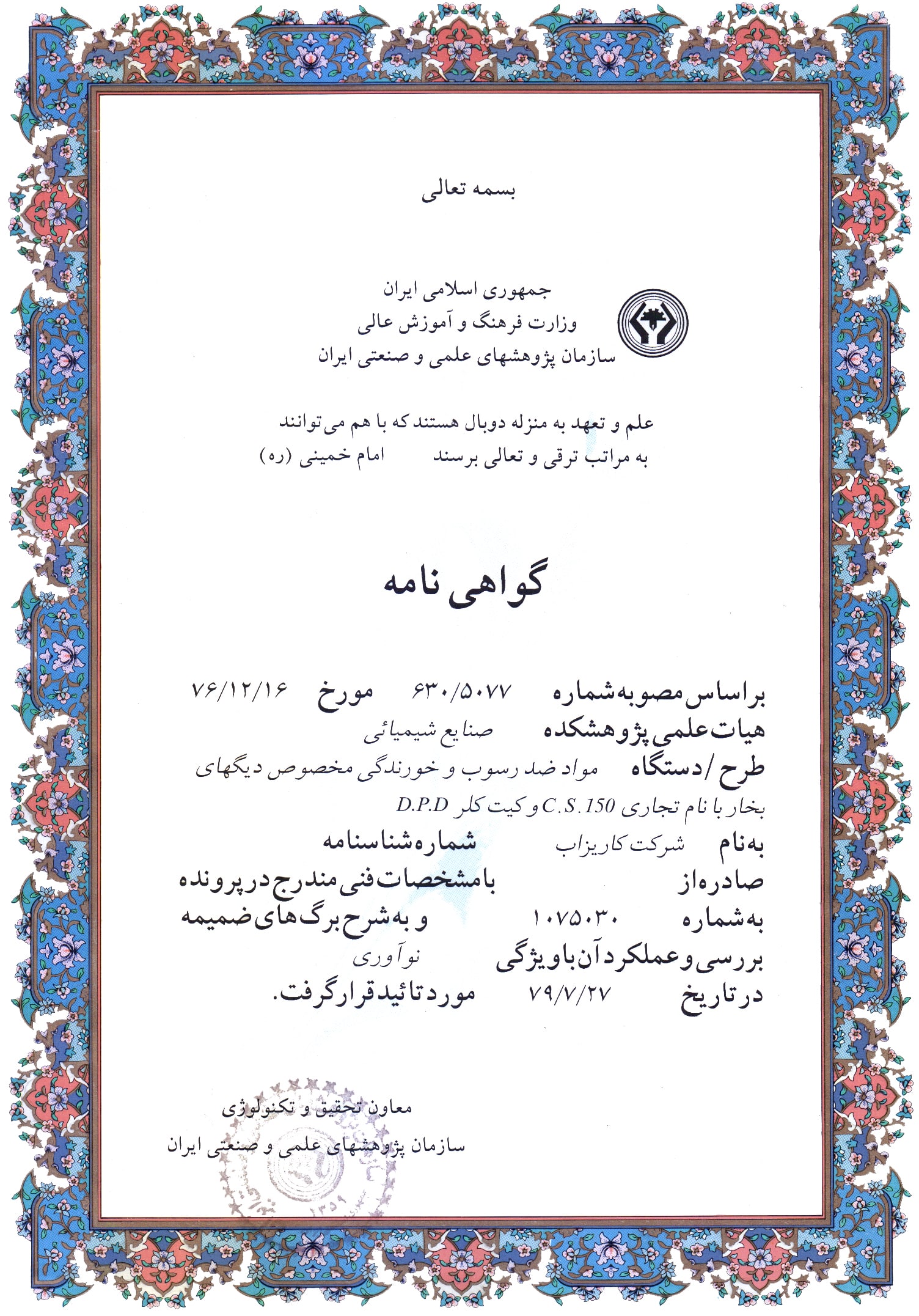 - دارنده گواهی طرح تاییدی از سازمان پژوهشهای علمی صنعتی ایران